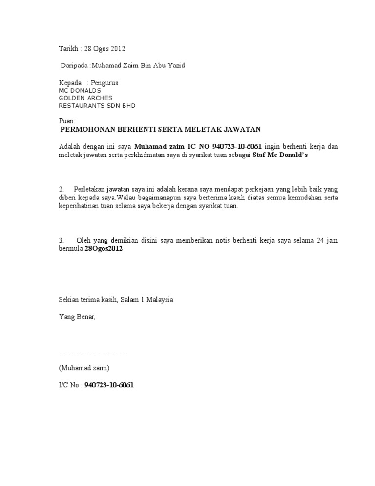 / Notis Berhenti Kerja Sebulan : Surat Berhenti Kerja Contoh Rasmi Notis 24 Jam Sebulan - Check spelling or type a new query.